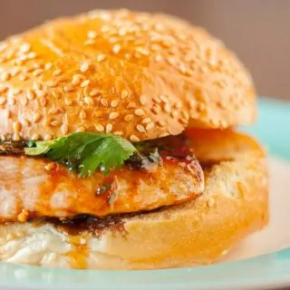 Sesame Salmon Burger with Apricot Soy Sauce Gaze. Sweet and salty salmon burger that’s fresh and healthy. Tender flaky fish with a fruity and savory finish.